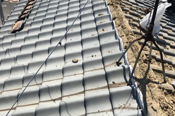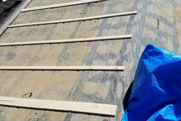 本工事では、既存屋根材の劣化が進行していたため、屋根葺き替え工事をご提案しました。