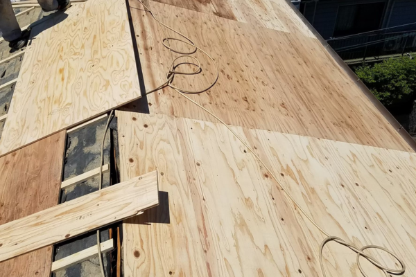 既存屋根を撤去したうえで、下地の状態を確認・補修し、新たにカラーベストを施工しています。